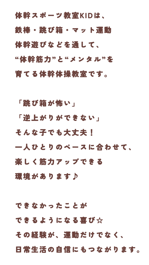 名古屋市天白区の体幹スポーツ教室KID名古屋天白店|初めての習い事や運動が苦手な子向けの体操教室